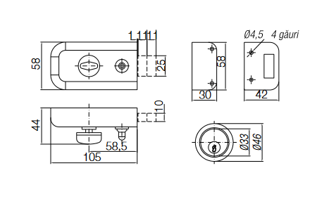 Broască aplicată, acționată cu cilindru cu cheie verticală.