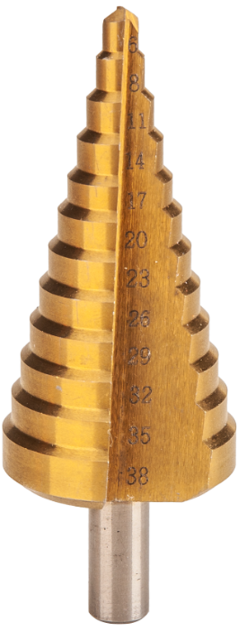 Burghiu in Trepte EvoTools este realizat din aliaj HSS si poate gauri materiale precum inoxul, otelul, metalele neferoase si plasticul.